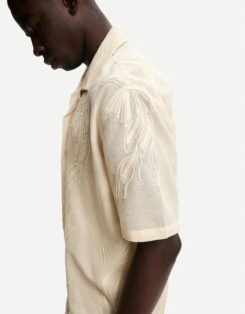 Polo de hombre crochet color crema ZARA