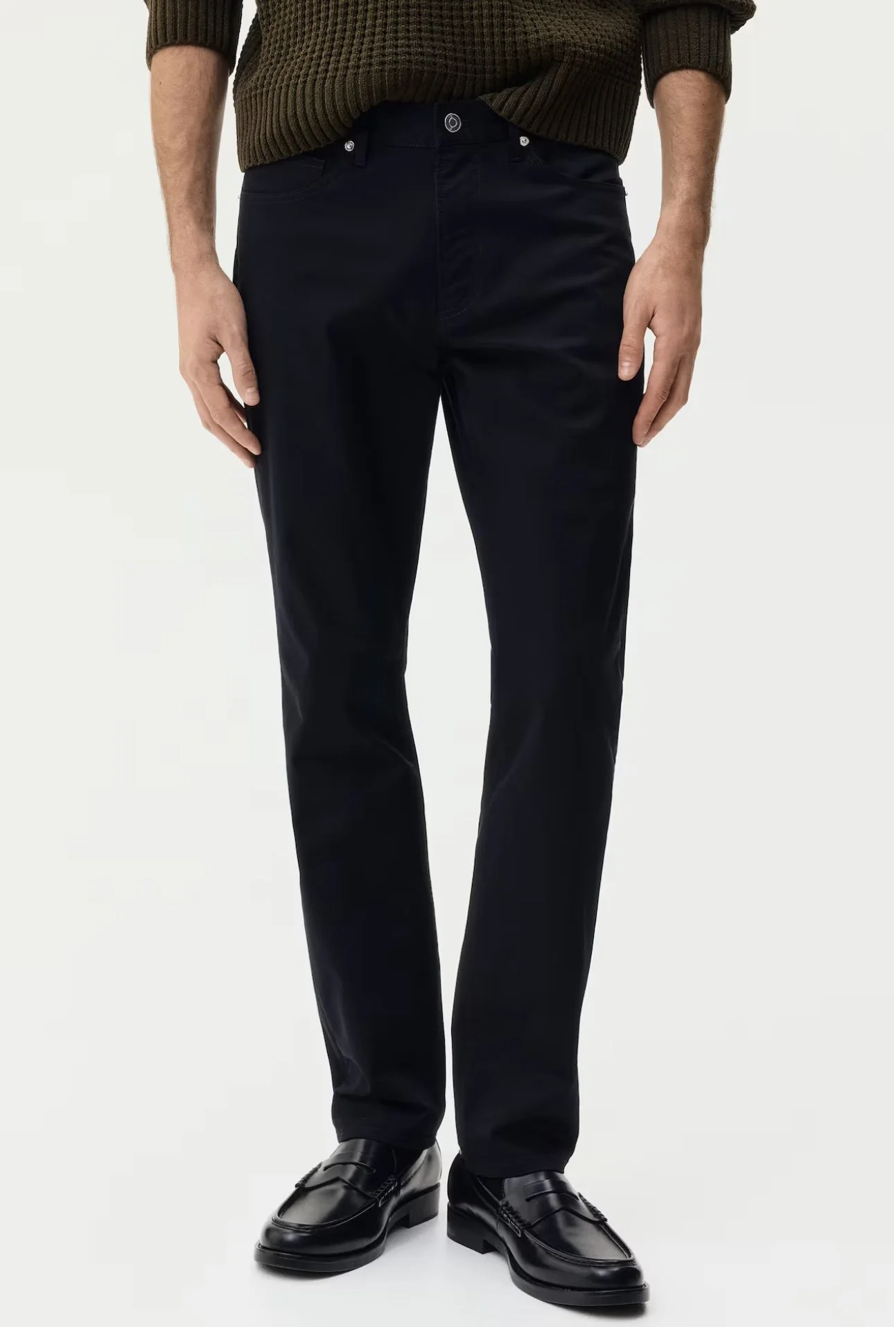 Pantalones de hombre de sarga ajustados azul marino H&M